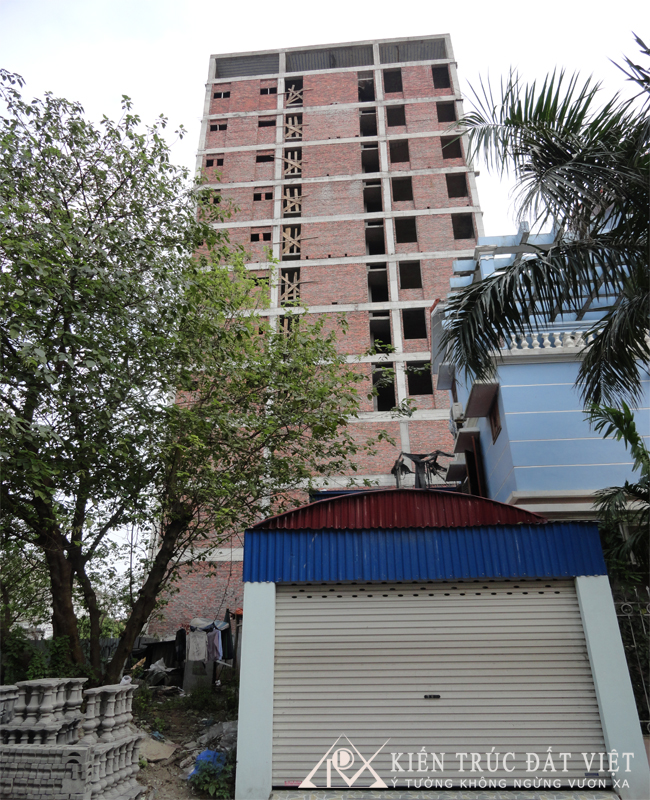 Hiện trạng công trình là tòa nhà đã xây xong phần thô 12 tầng (cả hầm)