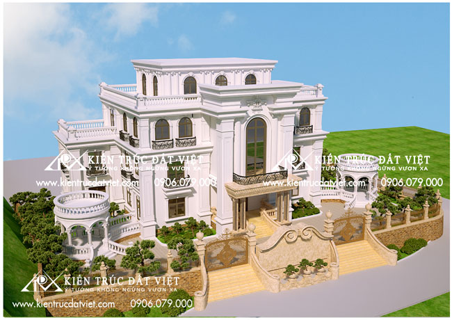Công ty CP kiến trúc Đất Việt đã lên phương án thiết kế biệt thự tân cổ điển đẹp như sau: