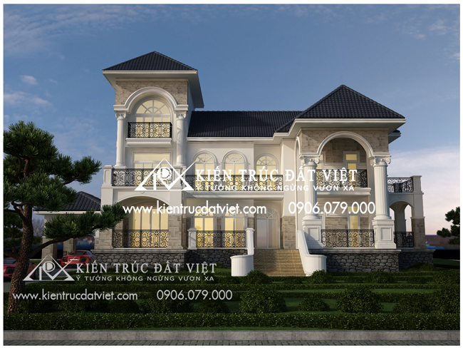 Đội ngũ KTS Kiến trúc Đất Việt đã nắm bắt được mong muốn của chủ đầu tư và vị thế của khu đất nên đã đưa ra phương án thiết kế biệt thự 2 tầng siêu đẹp như sau: